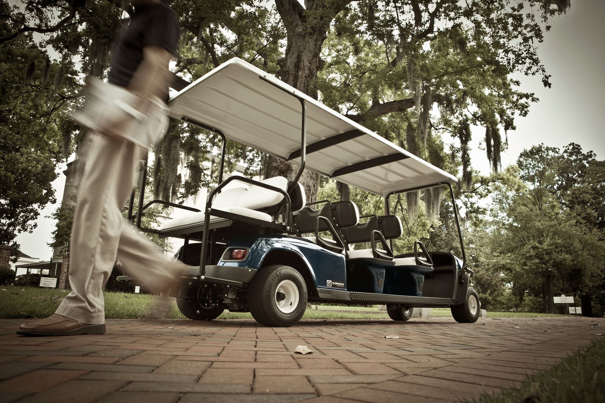 Designed for safety and comfort, the Shuttle 8 personnel transport vehicle delivers all the space you need. Features like a large canopy, ergonomically-designed seating, and dependable powertrain options keep guests and workers happy.
